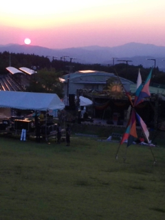 9月20日。いよいよ『中津川THESOLARBUDOKAN2013』仕込み!今日一日で作業おわらねば。三つのステージを行ったり来たりの一日(*_*)。ステージからの夕日が綺麗です~~。