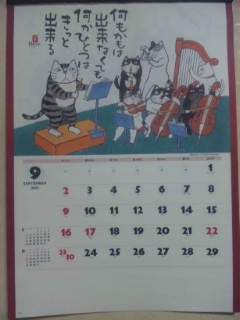 9月4日。カレンダーはオーケストラ(^_^)。だんだんと忙しい日になってきましたが暑さはまだまだ(*_*)。